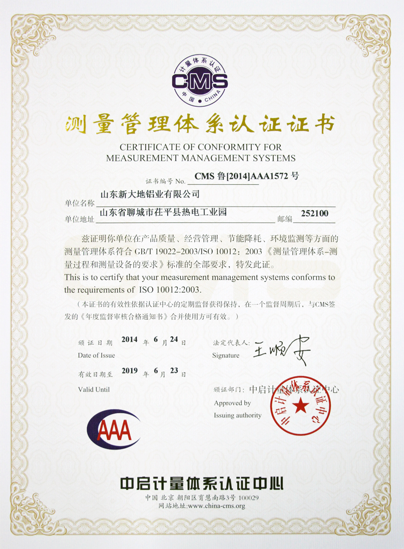 Previous:Shandong Xindadi Aluminum Co.,Ltd by GB/T19001-2008/IS09001: 2008 quality system certifica