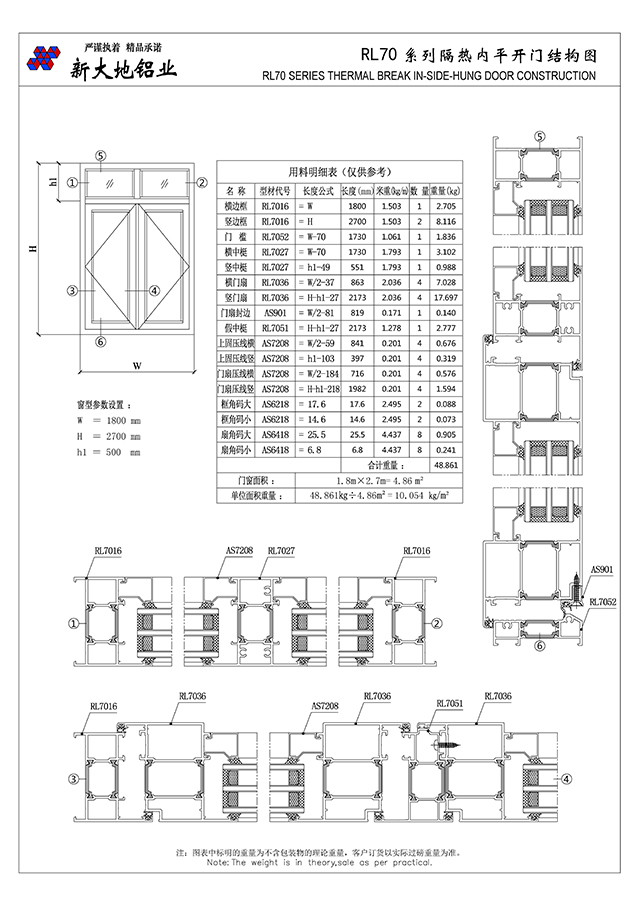 RL70系列隔熱平開門窗