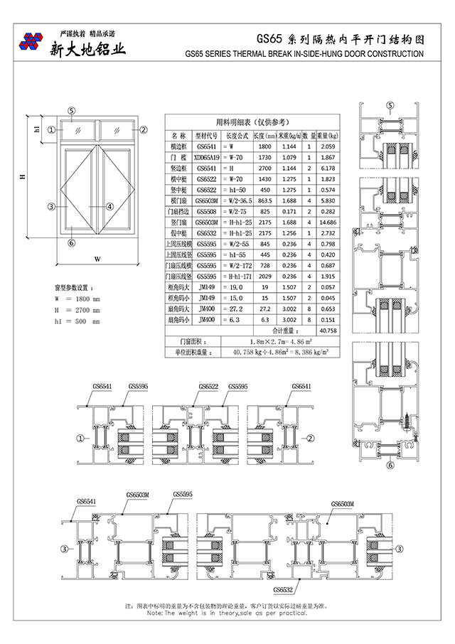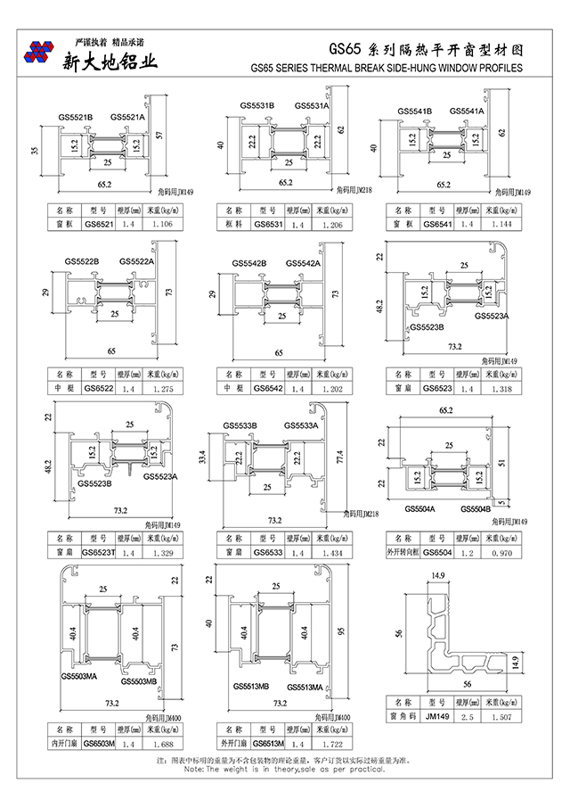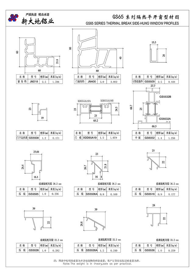 GS65系列隔熱平開門窗